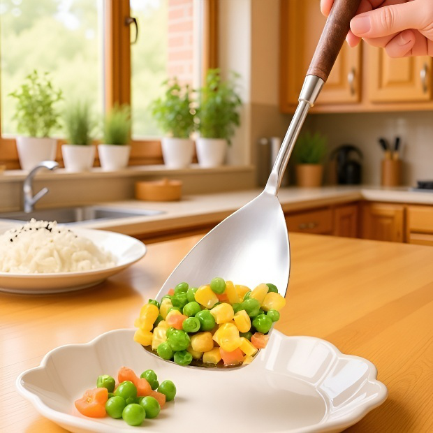 ● ステンレス製のヘラは耐久性に優れ、ケーキやスープ、鍋料理まで幅広く活躍。お手入れも簡単で衛生的です。